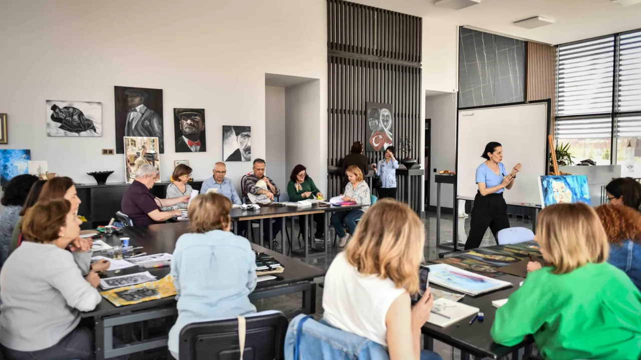 Figen Güneş Doğan (Resim Kursiyeri): “Resim dersine katılıyorum. Pastel ve kuru boya çalışmalarla başladık. Sonra akrilik çalışmalar yaptık. Çok faydalı oldu. Benim resim geçmişim çok fazla yoktu. Bir kurs almıştım önceden ama Belediyenin hiç böyle güzel bir kursu olduğunu bilmiyordum. Böyle değerli hocaları burada bulabileceğimizi de bilmiyorduk. Çok güzel. Bina da çok güzel, yüksek tavan, yepyeni, camekânlı. İnsanın buraya gelesi geliyor. Böyle bir imkânı bize verdiği için çok teşekkür ediyoruz.”