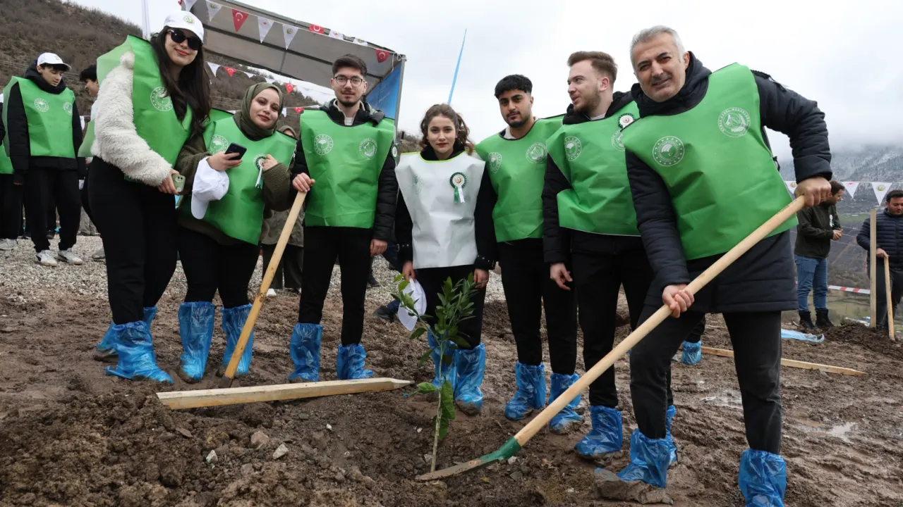 Artvin'de 21 Mart Dünya Ormancılık Günü ve Orman Haftası dolayısıyla Artvin Çoruh Üniversitesi (AÇÜ) Eğitim Fakültesi Sınıf Öğretmenliği öğrencileri fidan dikim törenine katıldı.Bayram SARAYOĞLU / ARTVİN (İGFA) - Artvin Orman Bölge Müdürlüğünce Seyitler Köyü’nde düzenlenen etkinlikte, yaklaşık 2 dönüm alana sedir, ceviz, elma, armut, limon, mandalina ve zeytinden oluşan 150 adet fidan toprakla buluşturdu.