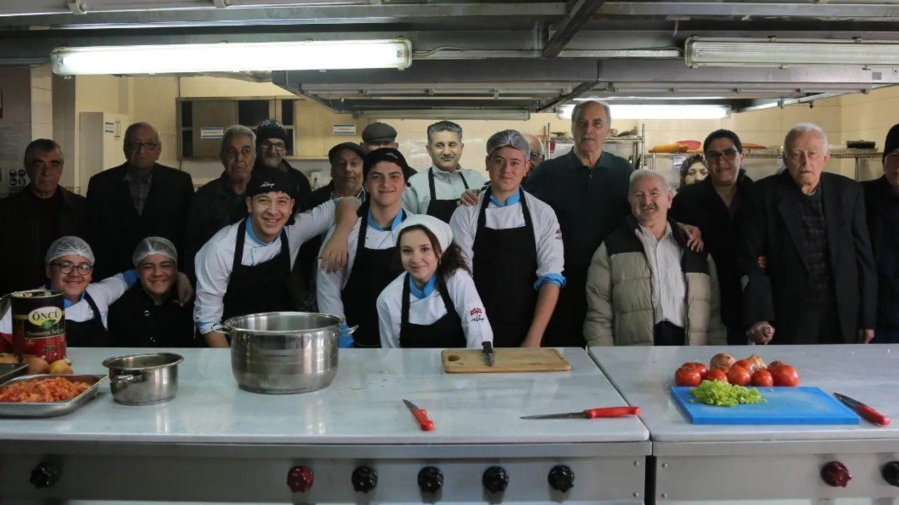 Efes Selçuk Belediyesi Akıncılar Huzurevi sakinleri, İzmir İl Eğitim Müdürlüğü’nün “İyilik Gönüllüleri” projesi kapsamında Selçuk Şehit Er Mehmet Yüce İMKB Mesleki ve Teknik Anadolu Lisesi, Yiyecek İçecek Hizmetleri Bölümü öğrencileri ile bir araya geldi.İZMİR (İGFA) - Yiyecek İçecek Hizmetleri Bölümü’nde öğrenim gören 8 öğrenci ve Efes Selçuk Belediyesi Akıncılar Huzurevi’nde yaşamını sürdüren 2 tecrübelinin yer aldığı iki grup oluşturularak yemek yarışması düzenlendi. Gençler ve huzurevi sakinleri yardımlaşarak birlikte yemek yapmanın keyfini çıkardı.