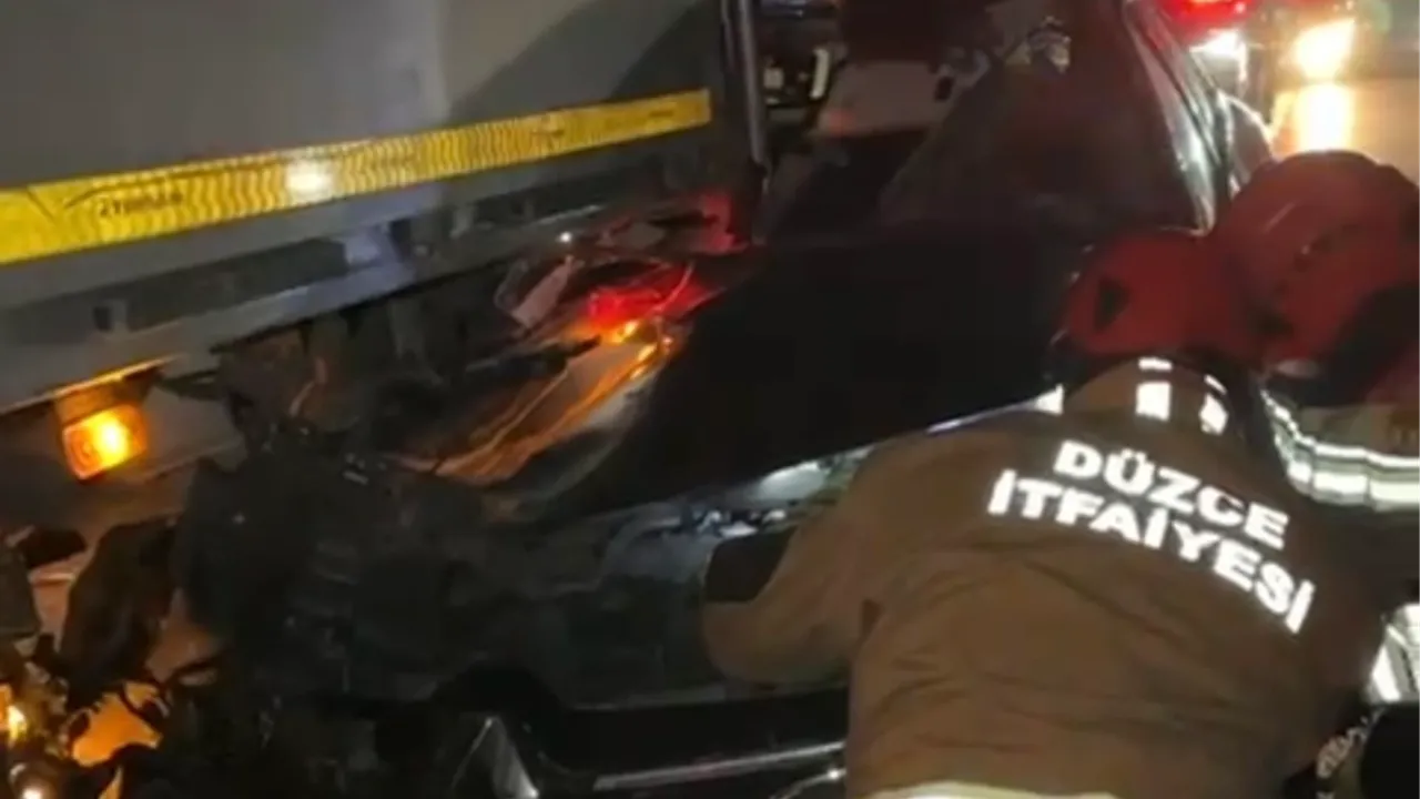 Anadolu Otoyolu Düzce kesiminde otomobilin tıra arkadan çarpması sonucu sürücü U.T. yaralanarak hastaneye kaldırıldı.Sefer DEMİR / DÜZCE (İGFA) - Anadolu Otoyolu Düzce kesiminde U.T. idaresindeki 34 KHF 025 plakalı otomobil, İstanbul istikametinde seyrederken, otoyolun Düzce mevkisinde, aynı istikamette seyir halinde olan A.Y. yönetimindeki 19 ADV 984 plakalı tıra çarptı.