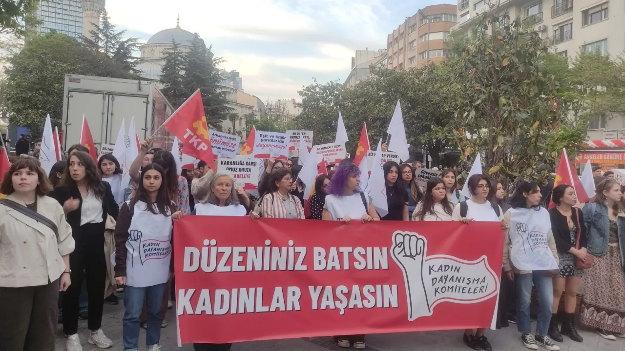 Kadın Dayanışma Komiteleri, İstanbul Şişli’de eski kocası tarafından kaçırılmaya çalışılırken tabancayla vurularak öldürülen Bahar Aksu için eylem yaptı. Kadınlar, “Düzeniniz batsın, kadınlar yaşasın” sloganıyla şiddete ve eşitsizliğe karşı mücadele çağrısı yaptı.İSTANBUL (İGFA) - Kadın Dayanışma Komiteleri (KDK), İstanbul Şişli’de 34 yaşındaki Bahar Aksu’nun eski kocası ve iki erkek tarafından kaçırılmaya çalışılırken tabancayla vurularak öldürülmesi üzerine eylem düzenledi. Şişli Camii önünde toplanan kadınlar, “Kadınlar ayağa bu düzeni yıkmaya”, “Düzeniniz batsın kadınlar yaşasın”, “Kadınlar birleşecek bu düzen yıkılacak” sloganlarıyla şiddete ve eşitsizliğe isyan etti.