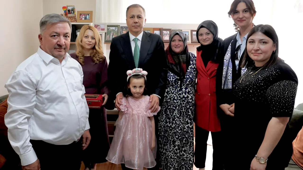 Şehidin annesi Zübeyde, babası Ali, eşi Şerife ve kızı Mina ile bir araya gelen Bakan Yerlikaya, duygusal anlar yaşadı.