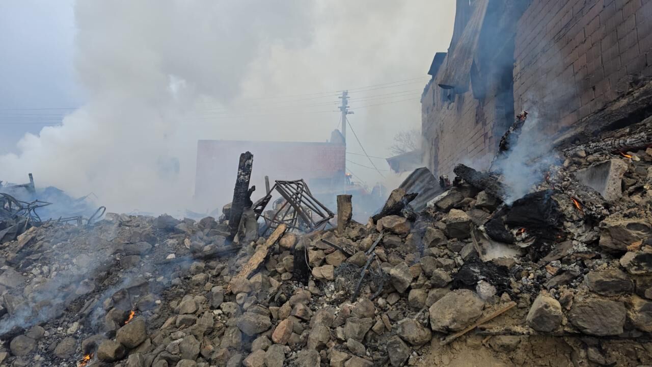 Bolu'nun Gerede ilçesinde çıkan yangında, 4'ü boş 5 ev ile 8 samanlık kullanılamaz hale geldi.