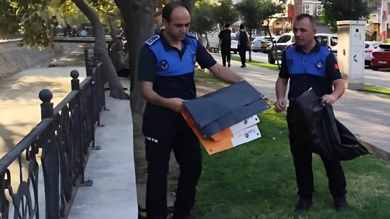 Denetimlerde, kamuya ait alanlara izinsiz olarak asılan afişler toplandı.