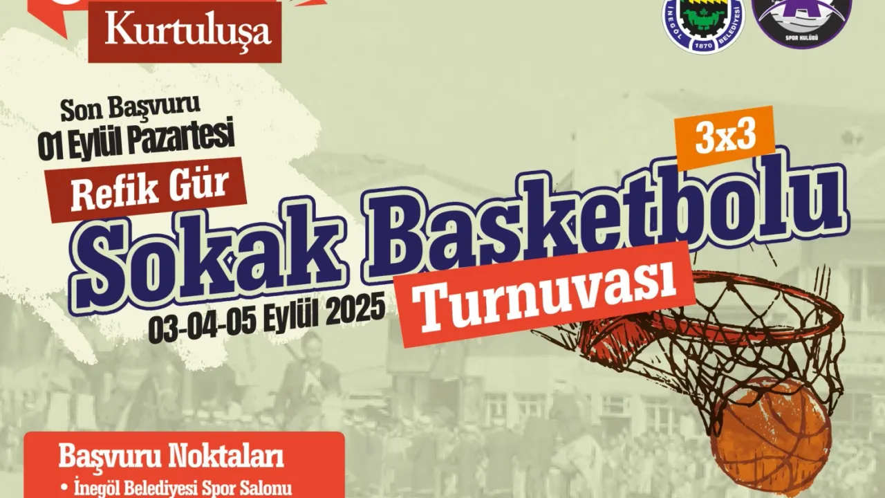 Bursa'da İnegöl Belediyesi’nin “Zaferden Kurtuluşa” etkinlikleri kapsamında düzenlediği Refik Gür Sokak Basketbolu Turnuvası için başvurular başladı. 3-4-5 Eylül tarihlerinde yapılacak turnuva için son başvuru 1 Eylül Pazartesi.BURSA (İGFA) - İnegöl Belediyesi 30 Ağustos Zafer Bayramından 6 Eylül İnegöl’ün düşman işgalinden kurtuluşunun yıl dönümüne kadar olan sürede 1 hafta boyunca “Zaferden Kurtuluşa” sloganıyla devam edecek etkinlikler düzenliyor.