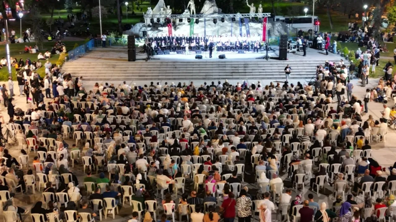 Şef Diler Yalaza yönetimindeki İnegöl Belediyesi Türk Sanat Müziği Korosu, 21.00’da heykel önünde kurulan sahnede birbirinden güzel Türk sanat müziği eserlerini seslendirildi. Koro ve solo şeklinde geçmişten günümüze uzanan seçkin eserlerle izleyicilere adeta müzik ziyafeti sunuldu.,