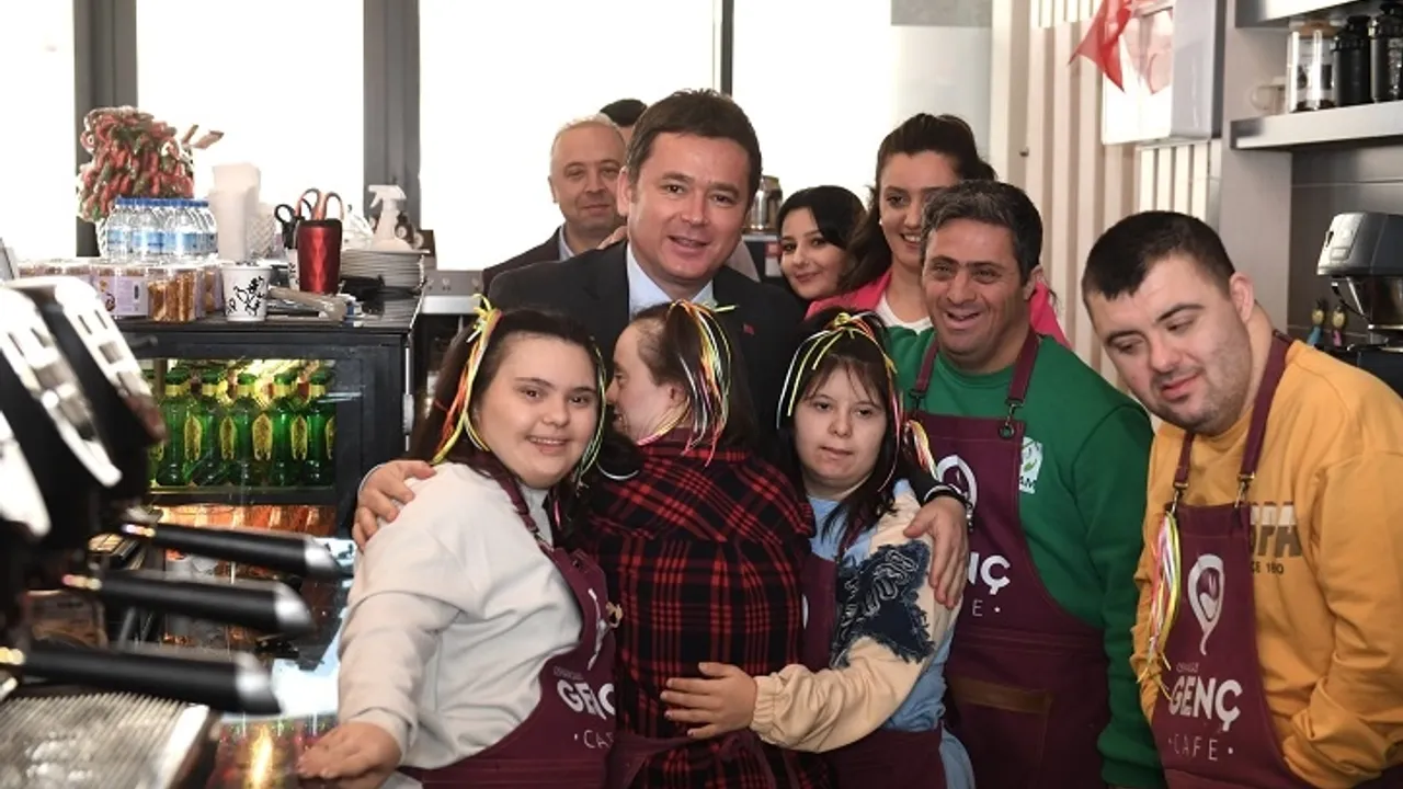 BURSA (İGFA) - Bursa Osmangazi Belediyesi 21 Mart Dünya Down Sendromu Farkındalık Günü kapsamında etkinlik düzenledi. Düzenlenen etkinlikte Osmangazi Belediyesi Engelliler Bakım Merkezi’nde bakım hizmeti alan engelli bireyler farkındalık günü etkinliği kapsamında bir günlüğüne Genç Kafe’de baristalık, servis elemanlığı ve kasiyerlik yaptı. Başkan Aydın’da etkinliğe katılarak down sendromlu bireylere yardım etti. Genç Kafe’ye gelen müşteriler kahvelerinin engelli bireyler tarafından hazırlanıp sunulmasından büyük mutluluk duydu. İl kez bir kafede çalışma deneyimi yaşayan down sendromlu bireylerin mutluluğu yüzünden okundu.