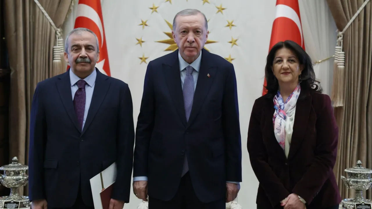 Cumhurbaşkanı Recep Tayyip Erdoğan, Halkların Eşitlik ve Demokrasi Partisi (DEM Parti) Van Milletvekili Pervin Buldan ile İstanbul Milletvekili Sırrı Süreyya Önder’i Cumhurbaşkanlığı Külliyesi’nde kabul etti.ANKARA (İGFA) - Cumhurbaşkanı Recep Tayyip Erdoğan, DEM Parti Van Milletvekili Pervin Buldan ve İstanbul Milletvekili Sırrı Süreyya Önder’den oluşan heyeti Cumhurbaşkanlığı Külliyesi’nde ağırladı.