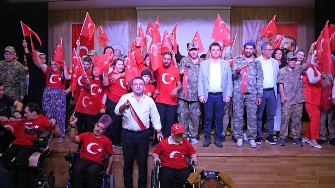 Bursa Osmangazi Belediyesi bünyesinde hizmet veren Osmangazi Belediyesi Engelliler Bakım Merkezi (OBAM)’da eğitim gören özel gereksinimli öğrenciler, hazırladıkları gösterilerle 30 Ağustos Zafer Bayramını coşkuyla kutladı.BURSA (İGFA) - Büyük Önder Mustafa Kemal Atatürk ve silah arkadaşlarının 26 Ağustos 1922’de başlatıp 30 Ağustos’ta zaferle sonuçlanan Zafer Bayramı’nın 103’üncü yıl dönümü için Osmangazi Belediyesi Engelli Bakım Merkezi (OBAM)’da eğitim gören özel gereksinimli öğrenciler, birbirinden özel gösteriler hazırladı. 30 Ağustos Zafer Bayramı'na özel Temiz Orkestra eşliğinde tiyatro gösterisi, halk oyunu ve zeybek, oynayan özel öğrencilerin yaptıkları gösteriler izleyenler tarafından büyük beğeni aldı. OBAM üyesi engelli bireyler sahneledikleri tiyatro gösterisiyle halkın bağımsızlık inancını ve askerlerine olan desteğini canlandırdı. Gösteride Mustafa Kemal Atatürk’ün önderliği ve milletin yeniden doğuşunu anlatan canlandırmalar engelli bireyler tarafından yapıldı. Sahnelenen oyunlar programa katılanlar tarafından beğenilerek büyük alkış aldı. Osmangazi Gösteri Merkezi’nde düzenlenen 30 Ağustos Zafer Bayramı kutlama etkinliğine; Osmangazi Belediye Başkanı Erkan Aydın, Osmangazi Belediyesi Başkan Yardımcısı Mücahit Yıldızhan, engelli bireyler ve aileleri katıldı.