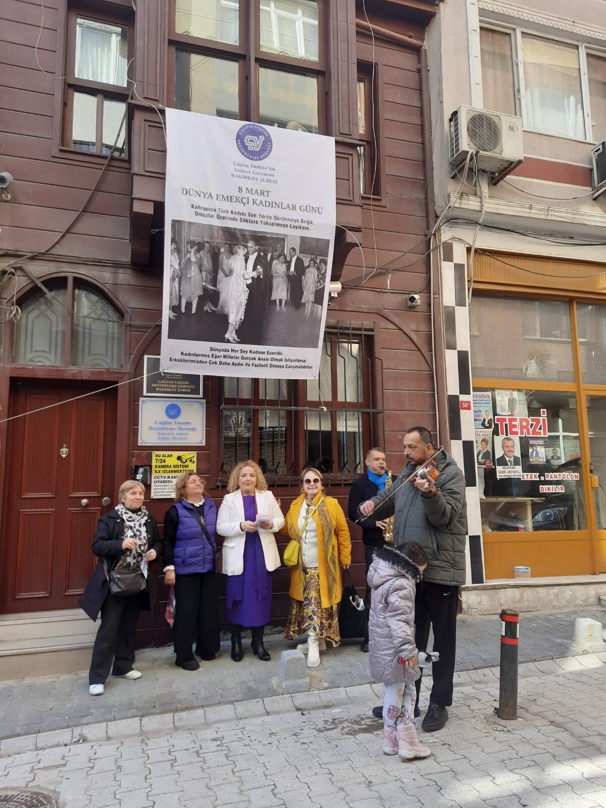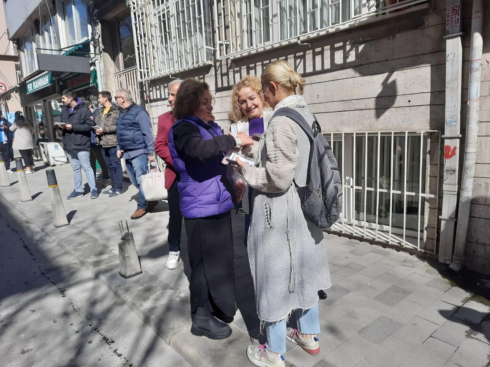Mahalleli komşuları ile birlikte düzenledikleri Kadınlar günü etkinliğinde konuşan Rabia Çökmez, “Komşularımızla birlikte el ele verip tertipli, tertemiz sokakları olan Yeşilin her rengini görebileceğimiz Sakızağacı mahallemizde Mutlu olmak birinci hedefimiz” diyor.