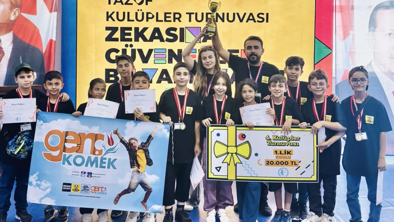 Konya Büyükşehir Belediyesi Genç KOMEK atölyelerinde eğitim alan öğrenciler, Tüm Akıl ve Zeka Oyunları Federasyonu tarafından düzenlenen 4. Kulüpler Turnuvası’nda 6 farklı oyundan oluşan parkur yarışmalarında 8 turun tamamını kazanarak Türkiye şampiyonu oldu.KONYA (İGFA) - Konya Büyükşehir Belediyesi bünyesinde hizmet veren Genç KOMEK’te öğrenciler, ulusal düzeyde elde ettiği başarılarla Konya’nın gururu oluyor.
