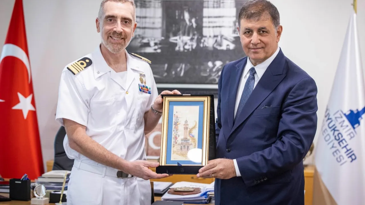 İzmir Büyükşehir Belediye Başkanı Dr. Cemil Tugay, İtalyan Donanması’na ait ITS Trieste Gemi Komutanı Albay Francesco Marzi ve beraberindeki heyeti ağırladı.İZMİR (İGFA) - İzmir Büyükşehir Belediye Başkanı Dr. Cemil Tugay, İtalyan Donanması’na ait ITS Trieste’nin Gemi Komutanı Albay Francesco Marzi ve beraberindeki heyeti makamında kabul etti.