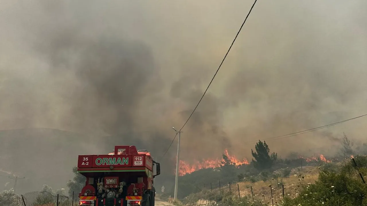 İzmir Büyükşehir Belediyesi İtfaiye ekipleri, Karaburun’da çıkan orman yangınına İzmir Orman Bölge Müdürlüğü ekipleri ile müdahale etti. Ekipler yangının yerleşim yerlerine ulaşmaması için yoğun mesai harcadı.İZMİR (İGFA) - İzmir Büyükşehir Belediyesi İtfaiye Dairesi Başkanlığı ekipleri, öğle saatlerinde Karaburun Mordoğan’da başlayan orman yangınını kontrol altına almak için yoğun mesai harcıyor.