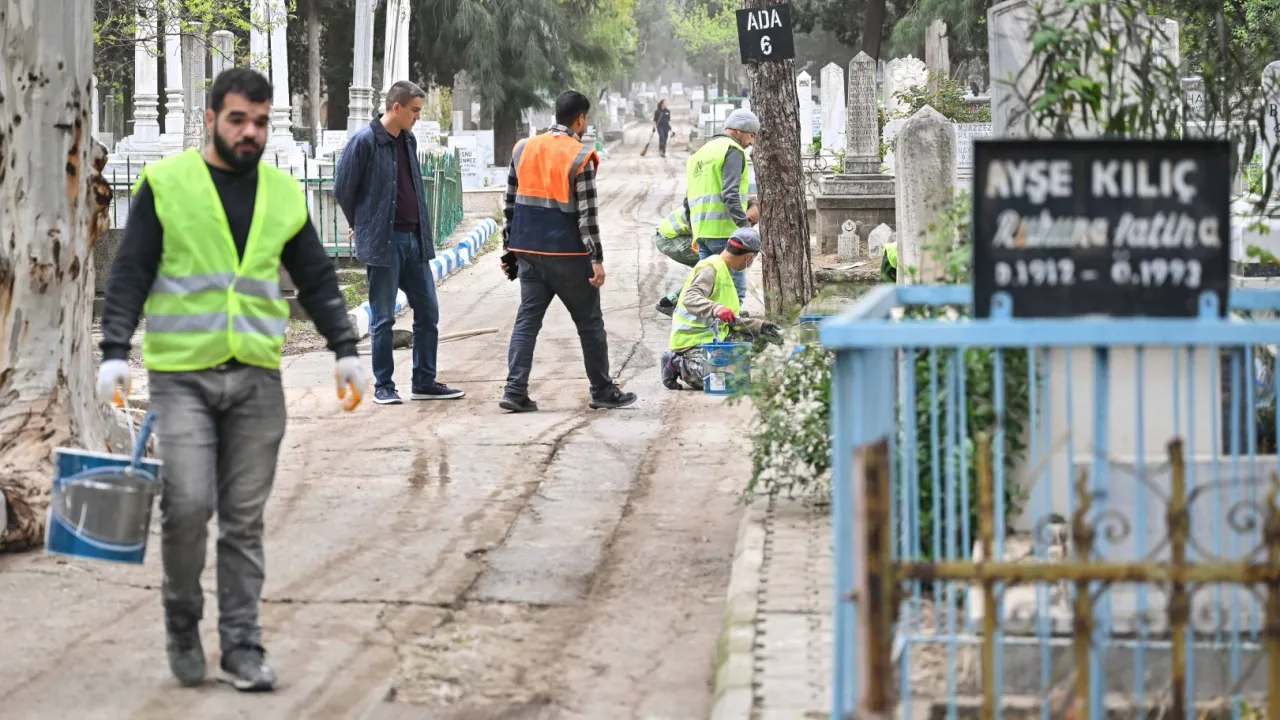 İzmir'de Ramazan Bayramı öncesinde Bornova Belediyesi ve İzmir Büyükşehir Belediyesi Mezarlıklar Daire Başkanlığı, ilçedeki mezarlıklarda temizlik ve bakım çalışmalarını tamamladı.İZMİR (İGFA) - İzmir'de Bornova Belediye Başkanı Ömer Eşki ve İzmir Büyükşehir Belediyesi Mezarlıklar Daire Başkanı Ali Kemal Elitaş, ekiplerin çalışmalarını yerinde inceledi.