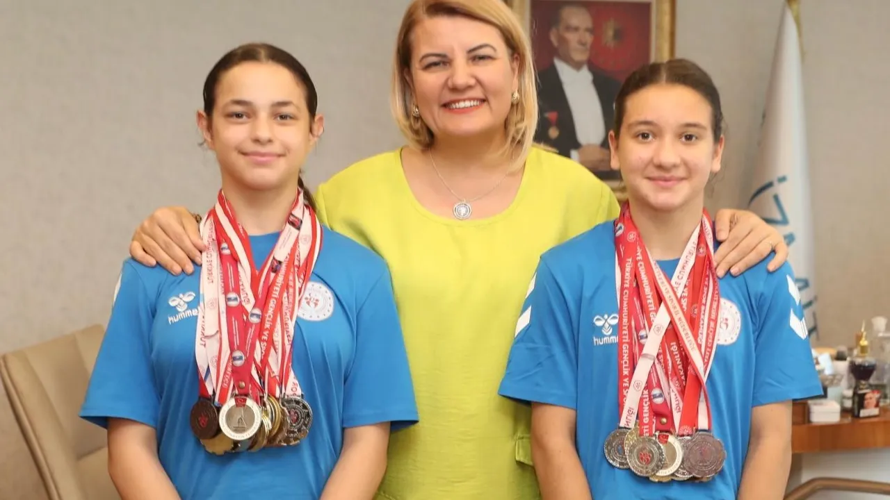 Kocaeli İzmit Belediye Başkanı Fatma Kaplan Hürriyet, Okullar Arası Artistik Cimnastik Türkiye Şampiyonası Finalleri’nde ikinci olan İzmit Belediyespor Kulübü Sporcu Eğitim Merkezi (SEM) sporcuları Buğlem Ercan ve Ayşe Beren Taşkın’ı tebrik etti.KOCAELİ (İGFA) - Kocaeli İzmit Belediyespor Kulübü’nün Sporcu Eğitim Merkezi (SEM) bünyesinde yetişen Buğlem Ercan ve Ayşe Beren Taşkın, Bolu’da düzenlenen 2025 Yılı Okullar Ararası Artistik Cimnastik Türkiye Şampiyonası Finalleri’nde Türkiye ikincisi olarak büyük bir gurur yaşattı. Türkiye genelinden birçok sporcunun mücadele ettiği organizasyonda, İzmitli genç cimnastikçiler üstün performanslarıyla göz doldurdu