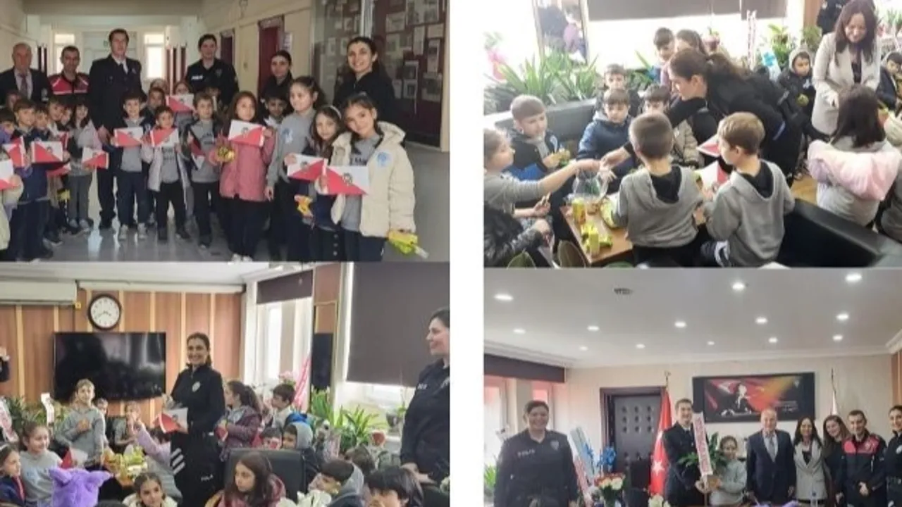 Edirne'de Keşan İlçe Emniyet Müdürlüğü, Türk Polis Teşkilatı’nın 180. yılı kutlamaları kapsamında anlamlı bir ziyarete ev sahipliği yaptı.Alpcan DEMİR / EDİRNE (İGFA) - Edirne'nin Keşan ilçesinde Nevzat Kahraman İlkokulu öğrencileri İlçe Emniyet Müdürlüğü’nü ziyaret ederek, polis haftasını coşku ve sevgiyle kutladı.