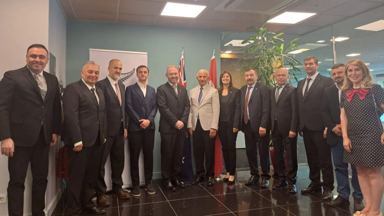 Kütahya Ticaret Borsası ortak yatırım fırsatlarını görüşmek amacıyla Kurucu Başkan Nafi Güral öncülüğünde Yeni Zelanda ve Hollanda Büyükelçiliği’ni ziyaret etti.KÜTAHYA (İGFA) - Kütahya’nın kara, hava ve demiryolu bağlantıları ile hem iç Pazar hem de dış ticaret yatırımları için stratejik bir lojistik merkez olduğunu vurgulayan Güral, “Kütahya; ihracat, tarım, hayvancılık, seramik ve porselen sektörlerinde önemli bir ticari potansiyel taşıyor. Özellikle tarım ve hayvancılık alanında Yeni Zelanda ve Hollanda ile önemli iş birlikleri kurabiliriz” dedi.