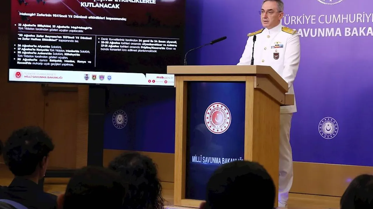 Milli Savunma Bakanlığı, 30 Ağustos Zafer Bayramı’nın 103’üncü yıl dönümü ve Malazgirt Zaferi’nin 954’üncü yıl dönümü için Türkiye genelinde ve Kosova’da gösteri uçuşları, gemi ziyaretleri, törenler ve bando konserleri düzenleneceğini duyurdu.ANKARA (İGFA) - Milli Savunma Bakanlığı, Malazgirt Zaferi’nin 954’üncü ve 30 Ağustos Zafer Bayramı’nın 103’üncü yıl dönümü kapsamında düzenlenecek etkinlikleri açıkladı.