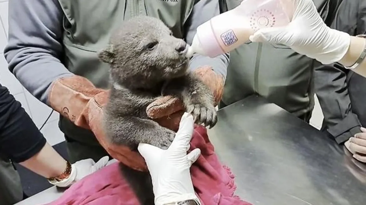 Yavru boz ayıya Ovakorusu Ayı Barınağı'ndaki ekipler, anne şefkatiyle yaklaşıyor ve besleme ile bakımına büyük özen gösteriyor.