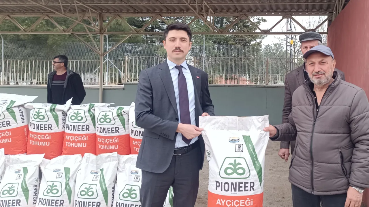 Bilecik'in Pazaryeri ilçesindeki 79 çiftçiye bin 920 kg yağlık ayçiçeği tohumu dağıtıldı.Pazaryeri Gündem / BİLECİK(İGFA) - Tarım ve Orman Bakanlığının "Tarım Arazilerinin Kullanımının Etkinleştirilmesi (TAKE) Projesi" kapsamında desteklenen "Nohut ve Ayçiçeği Yetiştiriciliğini Yaygınlaştırma" projesi kapsamında Pazaryeri’ndeki 79 çiftçiye 128 torba, bin 920 kilogram yağlık ayçiçeği tohumu dağıtıldı.