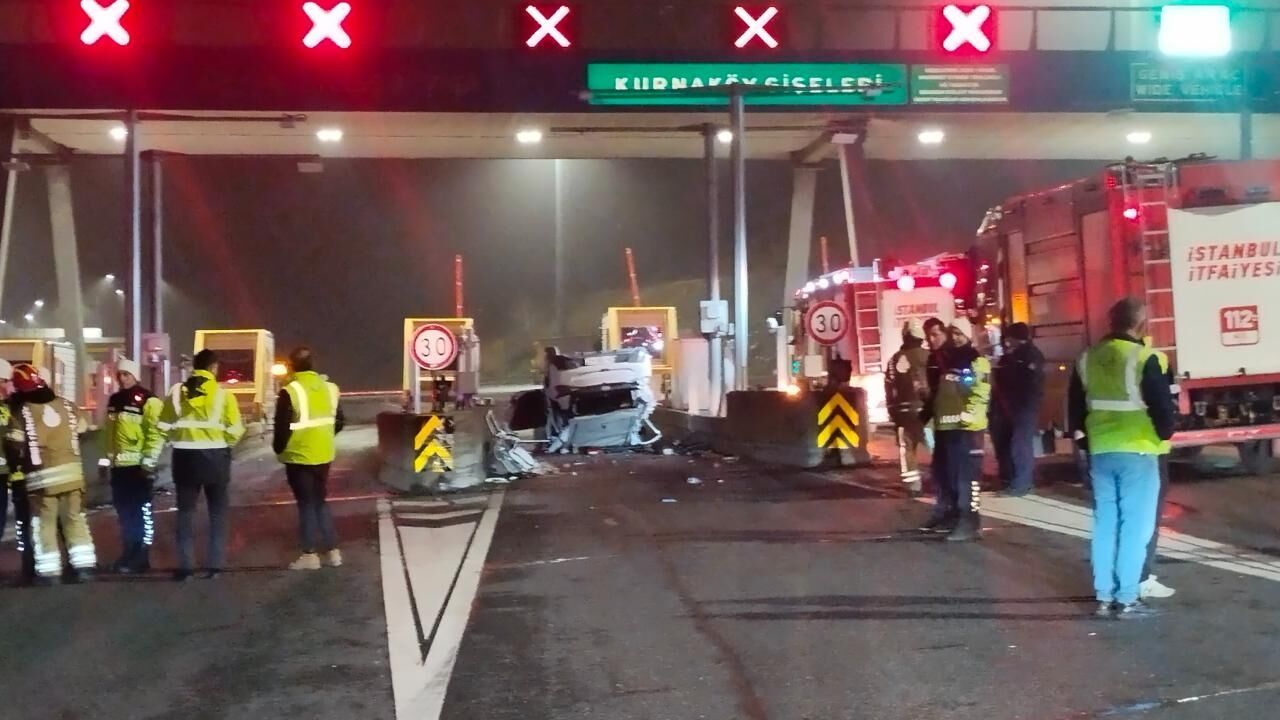 Pendik'te, Kuzey Marmara Otoyolu'ndaki gişelere çarpan otomobilin devrilmesi sonucu 2 kişi yaralandı.