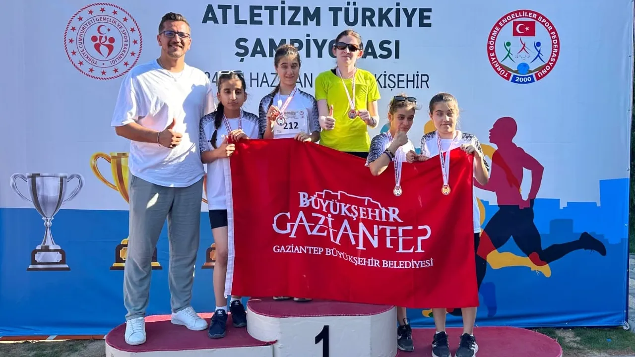Gaziantep Büyükşehir Belediye Spor Kulübü sporcuları, Türkiye Atletizm Şampiyonasında büyük başarıya imza attı.GAZİANTEP (İGFA) - Türkiye Görme Engelliler Spor Federasyonu tarafından Eskişehir’de düzenlenen şampiyonada Büyükşehir Belediye Spor Kulübü sporcuları toplamda 5 altın, 4 gümüş ve 1 bronz madalya sahibi oldu.
