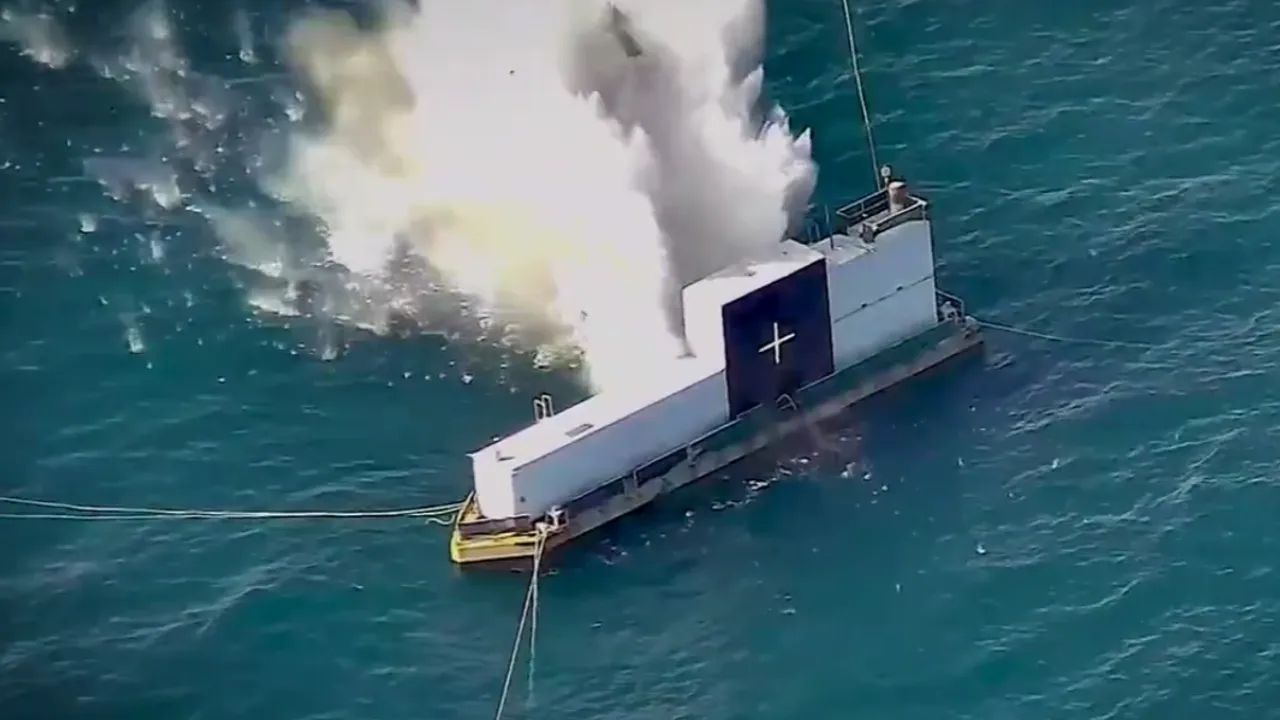 SOM-J, atış sırasında hedef deniz platformunu başarıyla vurdu.