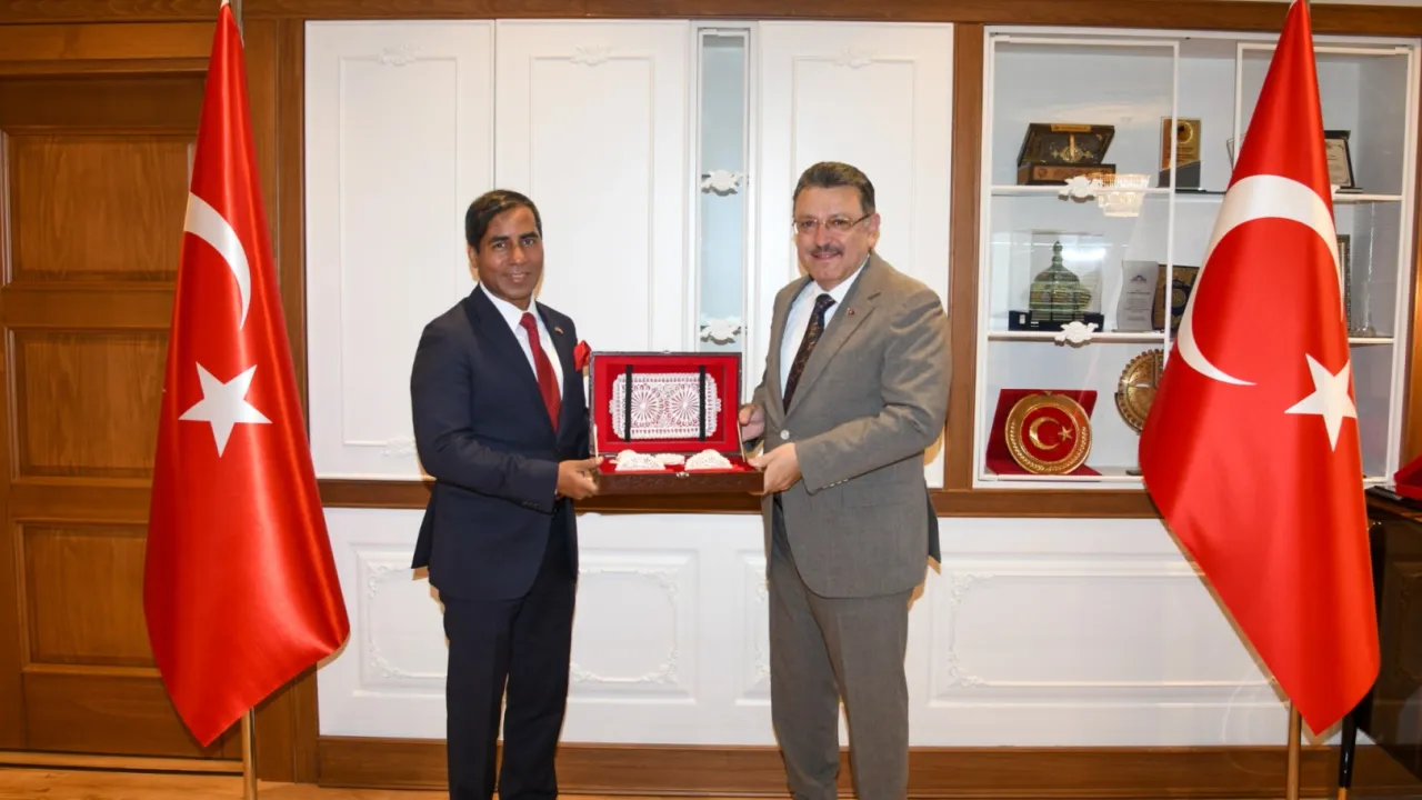 Bangladeş’in Ankara Büyükelçisi M. Amanul Haq, Trabzon Büyükşehir Belediye Başkanı Ahmet Metin Genç’i ziyaret etti.TRABZON (İGFA) - Trabzon Büyükşehir Belediye Başkanı Ahmet Metin Genç, Bangladeş'in Ankara Büyükelçisi M. Amanul Haq'ı ağırladı. Ziyarette iki ülke arasındaki iş birliğinin önemine vurgu yapıldı.