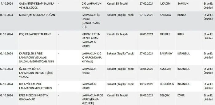 Tarım ve Orman Bakanlığı, Türkiye genelinde gıda güvenliğini sağlamak amacıyla yürüttüğü denetimlerde, lahmacuna "Tek Tırnaklı Eti", "Kanatlı Eti" ve "Sakatat" gibi tehlikeli gıdaların karıştırıldığını tespit etti.