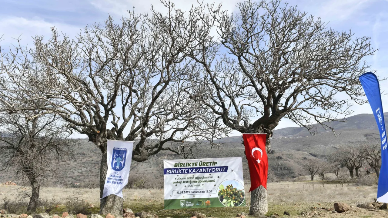 Ankara Büyükşehir Belediyesi, yabani sakız ağaçlarının antep fıstığına dönüşümü için harekete geçti.ANKARA (İGFA) - Ankara Büyükşehir Belediyesi, Başkentli üreticileri üretime teşvik edecek projeleri hayata geçirmeye devam ediyor. Kırsal Hizmetler Daire Başkanlığı yabani sakız ağaçlarının antep fıstığına dönüştürülmesi amacıyla yeni bir proje başlattı.
