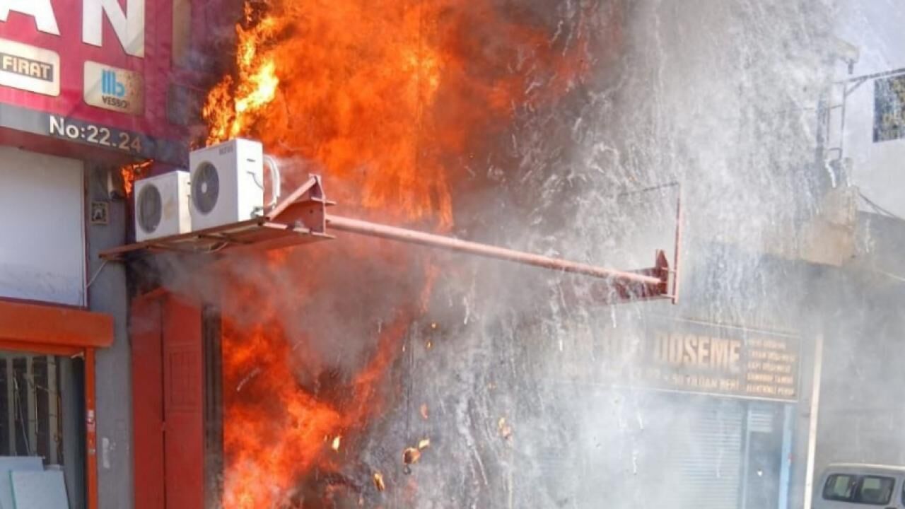 İstanbul'un Zeytinburnu ilçesinde, 2 katlı iş yerinde çıkan yangına itfaiye ekipleri müdahale ediyor.